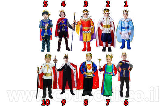 תחפושת מלך לילדים במבחר דגמים.